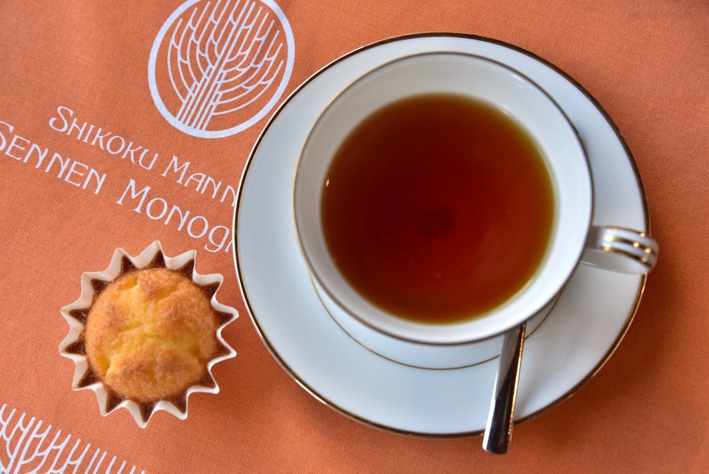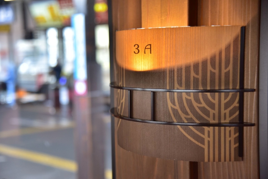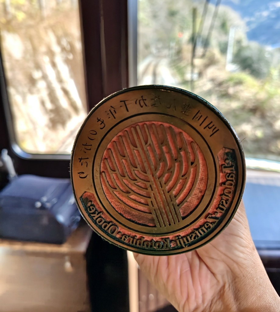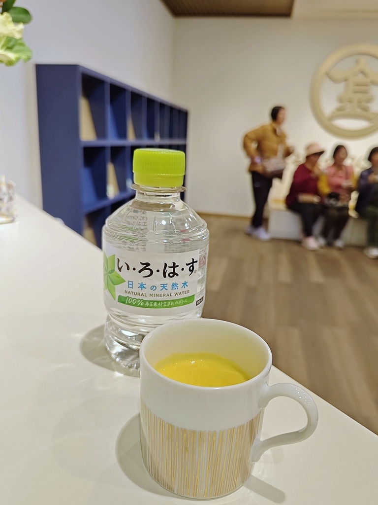 千年物語列車第一站停靠於琴平駅,說到琴平駅第一個就會想到金刀比羅宮,我們下車之後直接前往月台旁的迎賓空間,簡約設計搭配牆上一個大大的「金」字,讓人不言而喻。最後接過組員遞來一杯暖心暖胃的玉米濃湯及礦泉水,嗯,這一趟旅程肯定很美好。