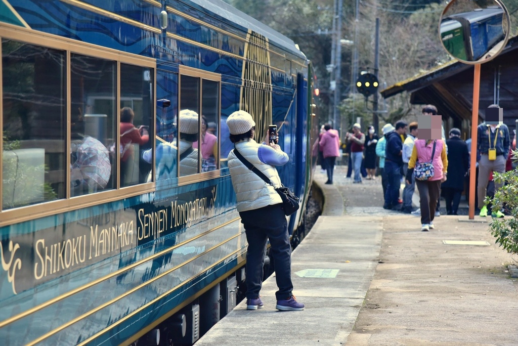 ▼大家可能很好奇?為何沿途都有許多當地居民、以及站務人員揮手搖旗熱烈歡迎,那是因為JR四國目前推出三輛觀光列車,就是為了實現與當地社區共存的意義。