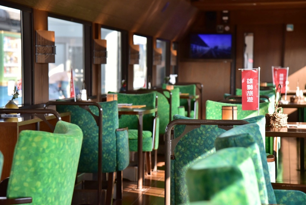 ▼隨著小呂的聲聲呼喚,我們趕緊回到列車,然後我就看見一個大驚喜!由於千年物語會停靠某些車站,大家肯定都會下車拍照留念。若當下餐點尚未食用完畢,乘務員會貼心地幫我們蓋上餐紙,避免灰塵汙染,雖然僅是一個小小貼心舉動,但真的會讓人很感動耶。