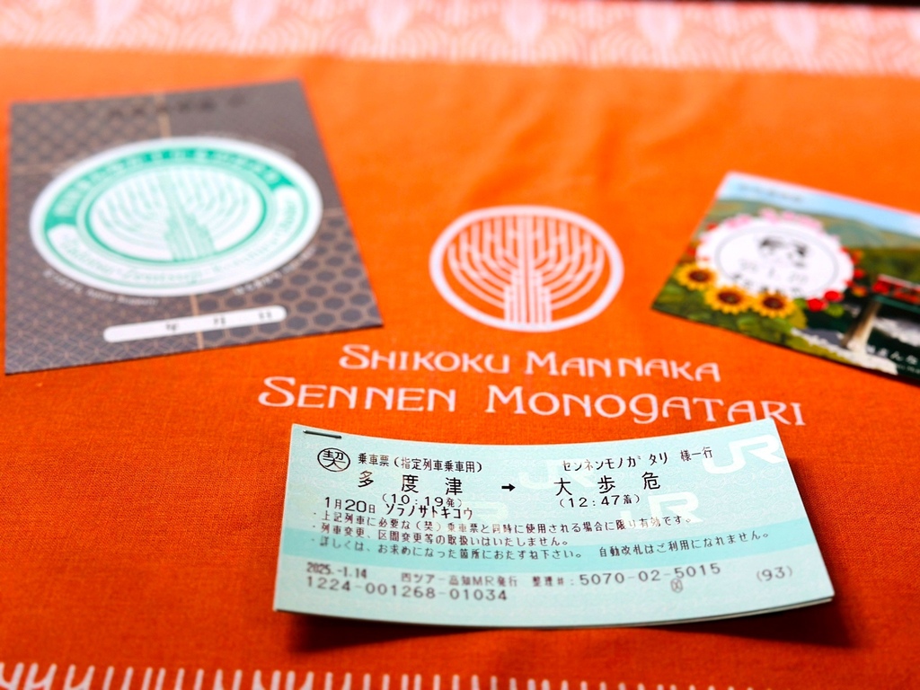 ▼我們一一從小呂手上拿到這一份乘車券,千年物語列車從多度津駅上午 10:19發車,中午 12:47抵達大步危駅,今日午餐即在車廂中享受。