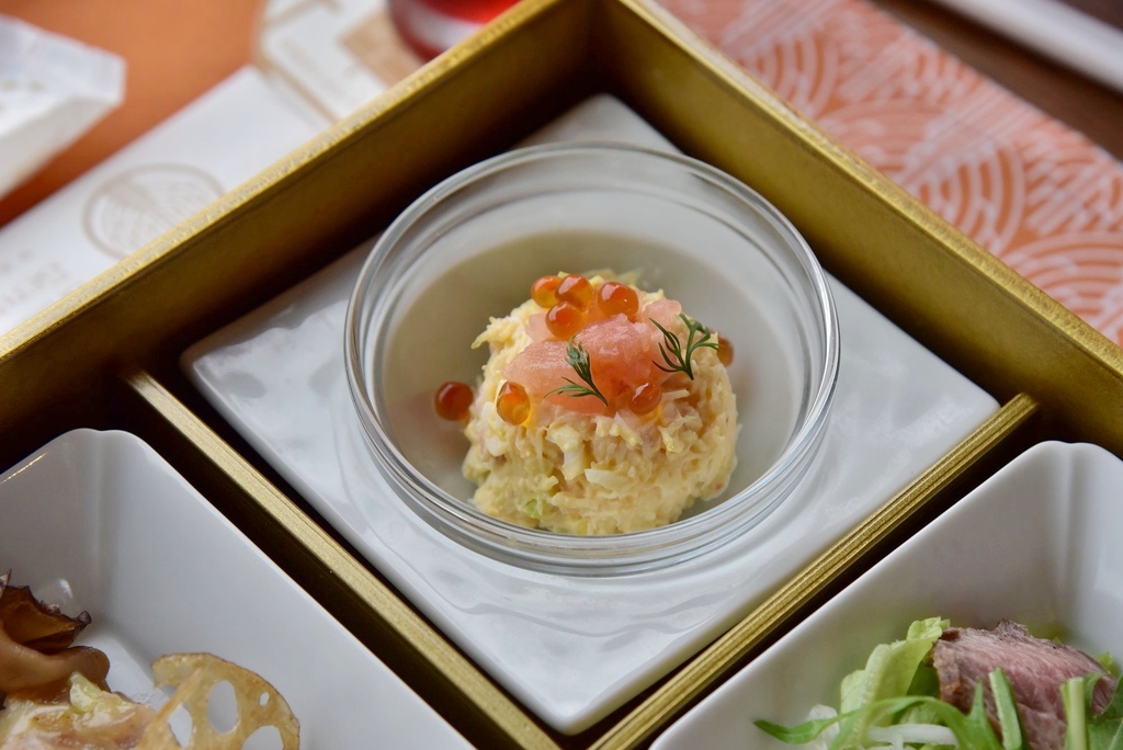 鮭魚子拌雪蟹沙拉是一道相當美味的海鲜沙拉,清爽滑順層次分明的口感,絕佳風味令人回味無窮。
