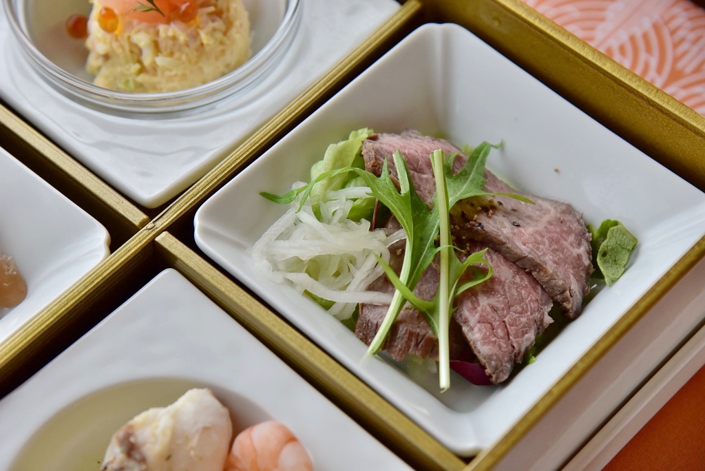 日本四國愛媛縣小豆島的橄欖相當有名氣,這一道利用橄欖油燒烤的牛肉料理,再佐上瀨戶內出產的酸甜可口檸檬酱料,更增添口感層次與營養價值。