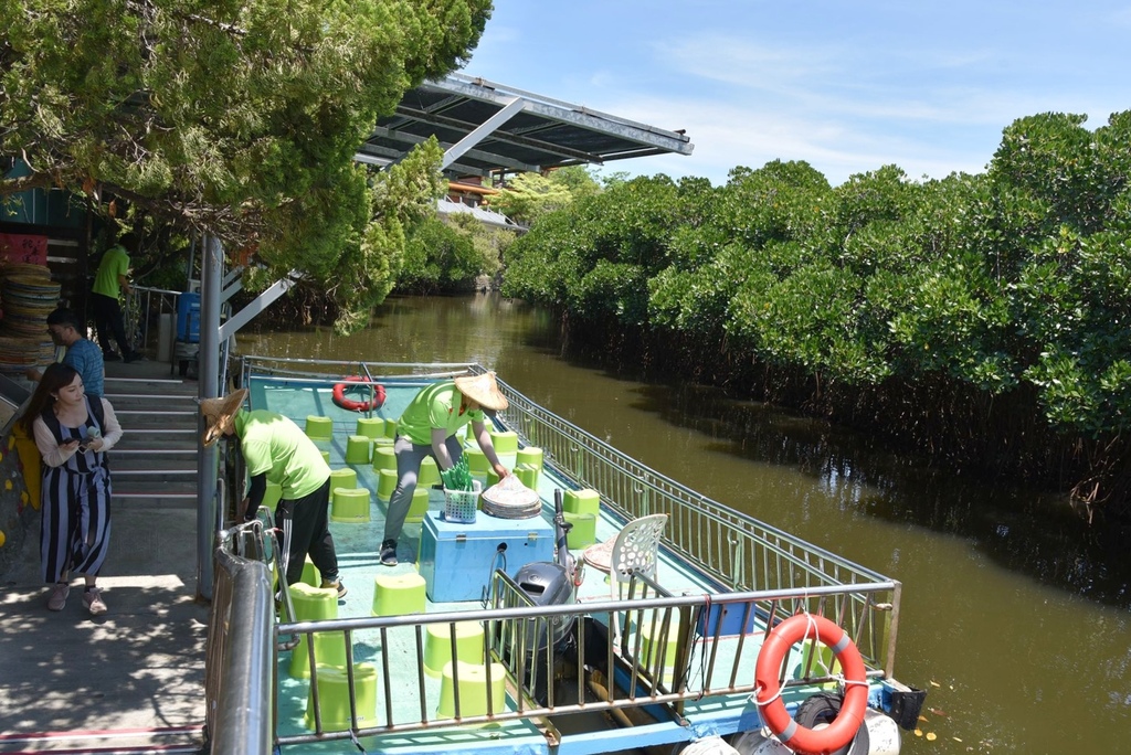 ▼四草綠色隧道遊程結束時,再將救生衣放入輸送帶,正式結束這一場兼具自然之美與生態多樣性的視覺饗宴。