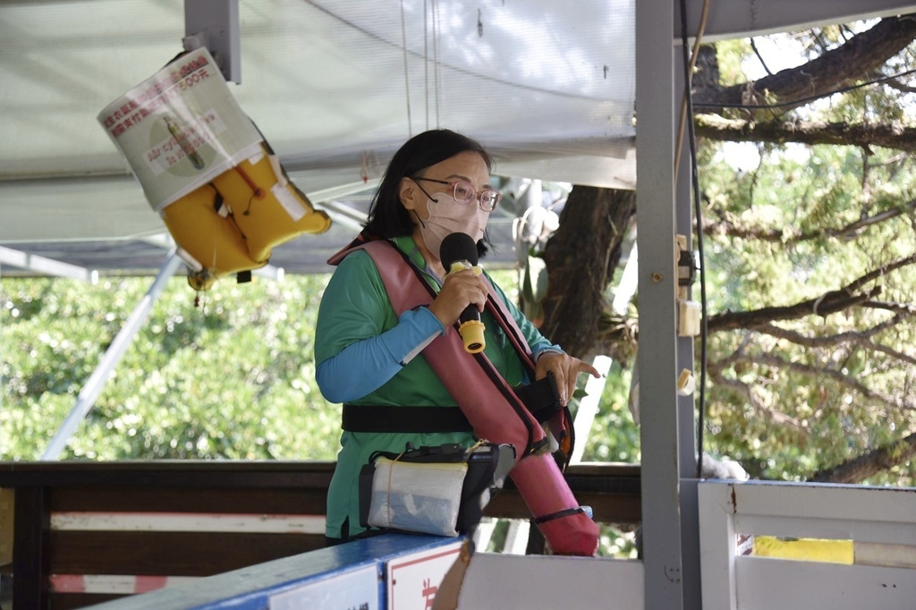 ▼搭乘四草綠色隧道-觀光船之前,服務人員會先說明搭船時需要注意哪些相關事宜。
