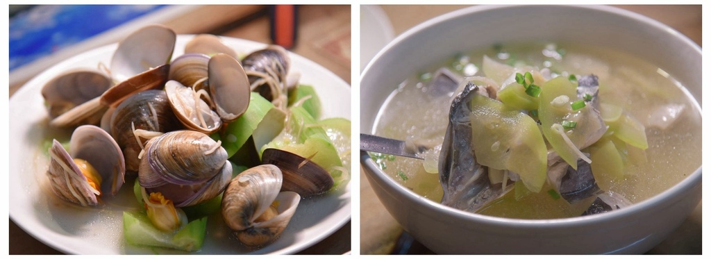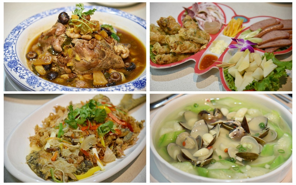 ▼這一天老闆將拿手菜餚推出給我們享用,有五柳枝煮虱目魚、蛤蠣絲瓜蒜頭蒸、蚵仔蔥香拌麵線、烏龍冷泡茶香蝦、龍膽魚頭西瓜綿、思慕鄉情彩蝶盤..等。最特別的是飯後甜點是老闆的兒子親自手作,他是一位專業甜點師傅,這一道芒果烤布丁口感滑順綿密,濃郁奶香中帶有焦糖的微甜。