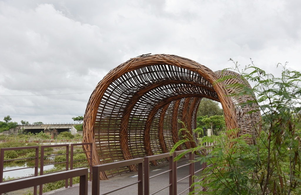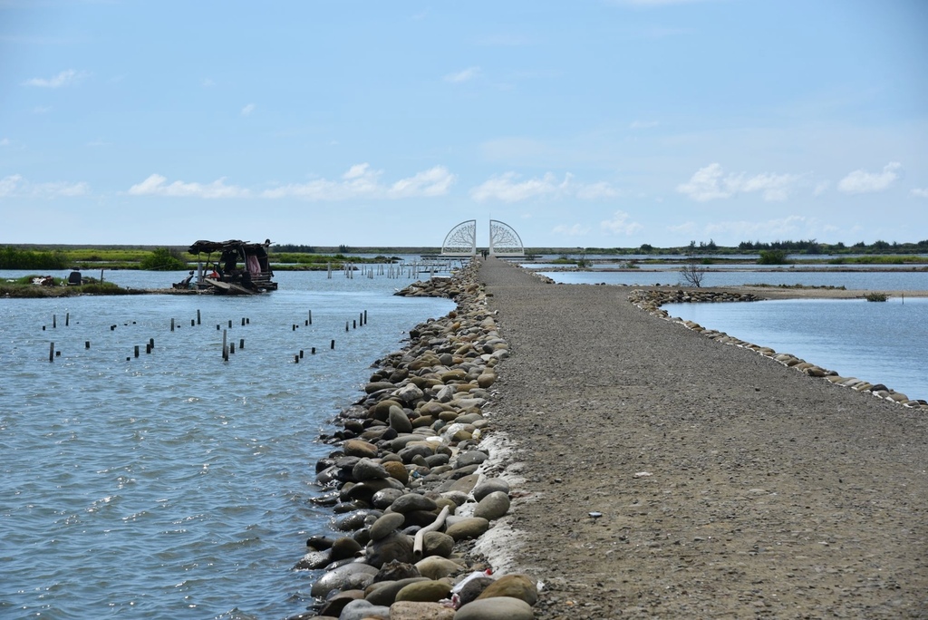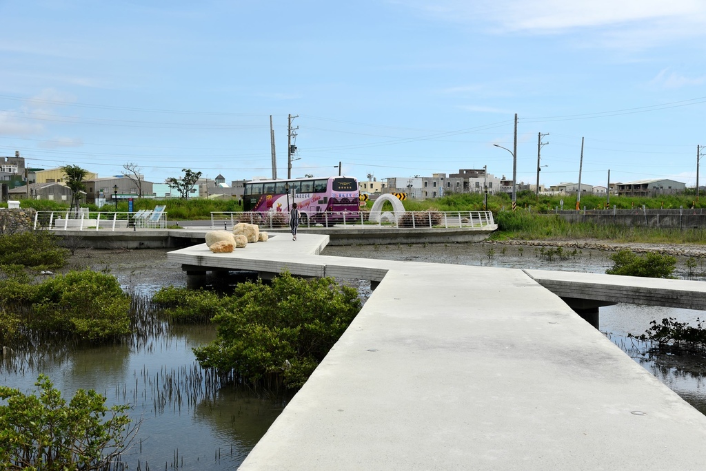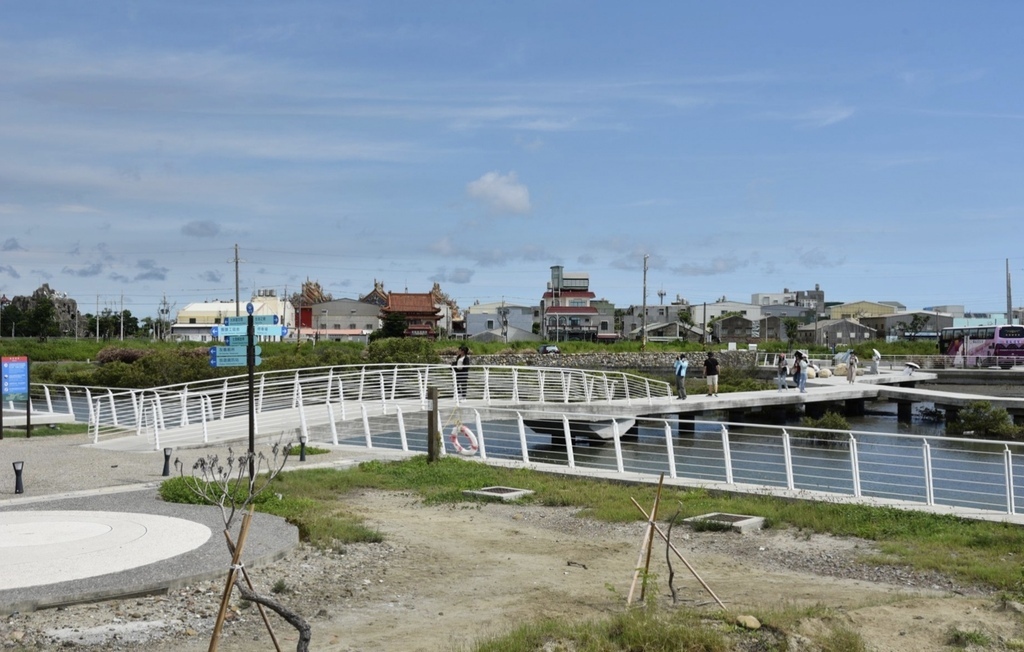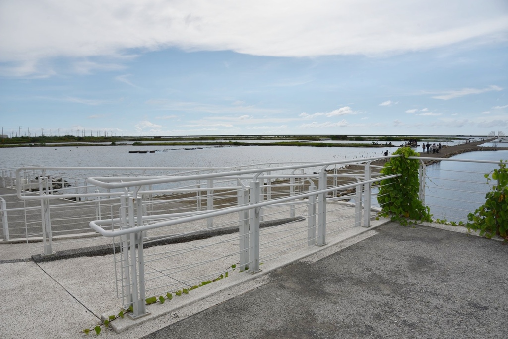 ▼佔地逾 1 公頃的扇鹽地景園區,保留既有生態鹽灘濕地清整危害棲地外來物種,並設置生態觀察棧道、解說休憩亭與水岸平台等環境教育設施,及停車空間與廁所等旅遊服務設施,使民眾瞭解扇形鹽田的歷史風華。