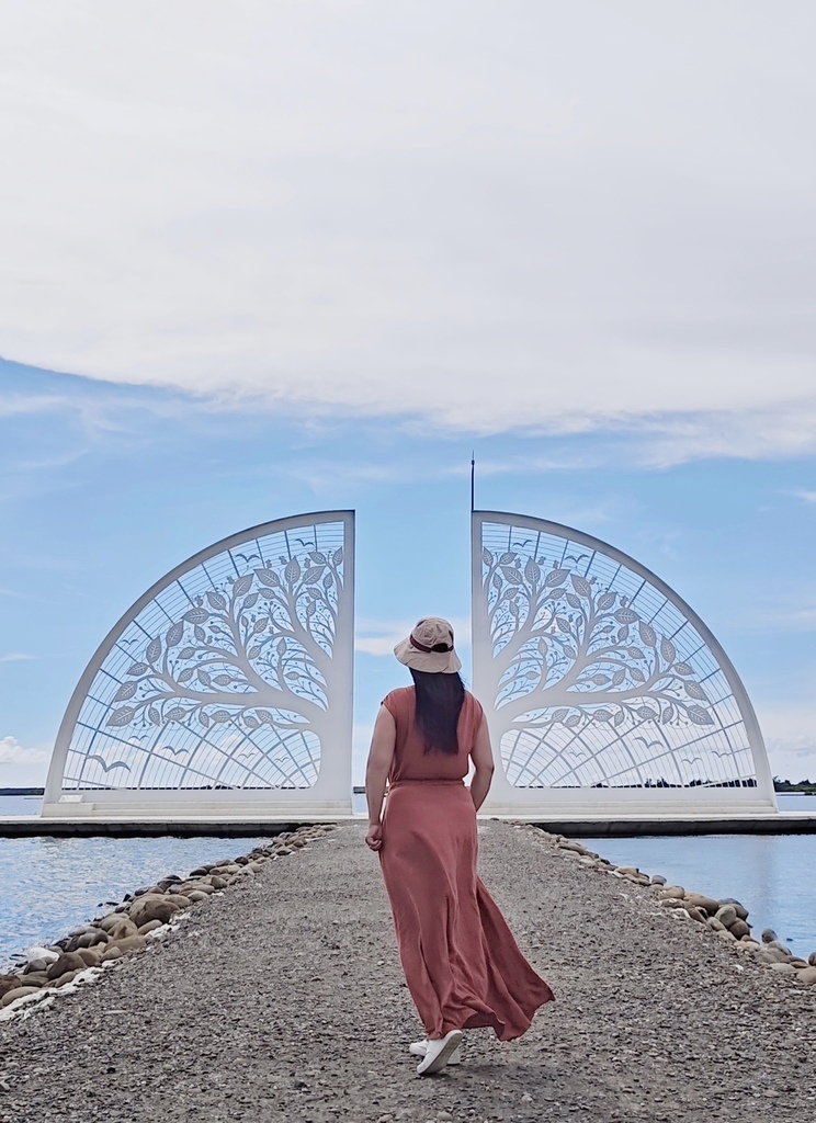 ▼佇立於「生命之樹」中央的步道上,是許多網美們爭相取景的熱門地點。尤其在天氣晴朗的黃昏時分,夕陽漸層的光彩將海面暈染成一片金色與銀色的夢幻光澤,更將純白的生命之樹襯托得無比動人。
