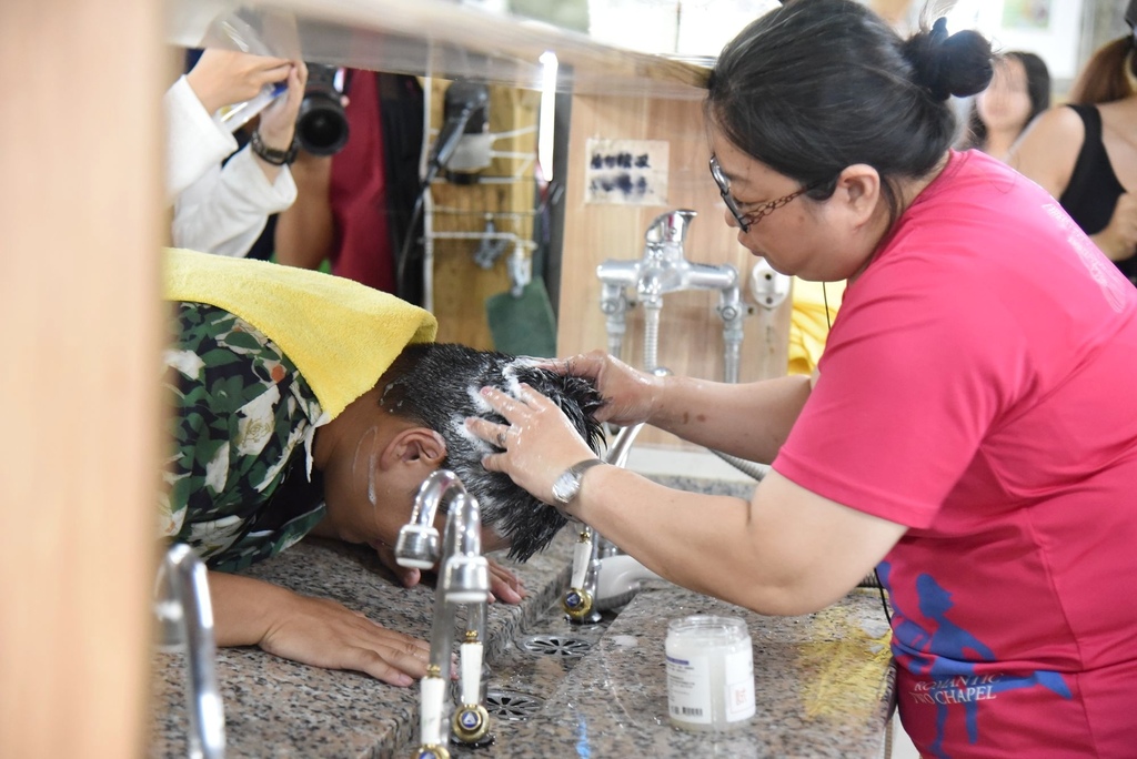 ▼是的,大家沒有看錯,來到北門觀光洗滌鹽工場除了可以體驗刷牙,還可以體驗洗頭喔.(笑)