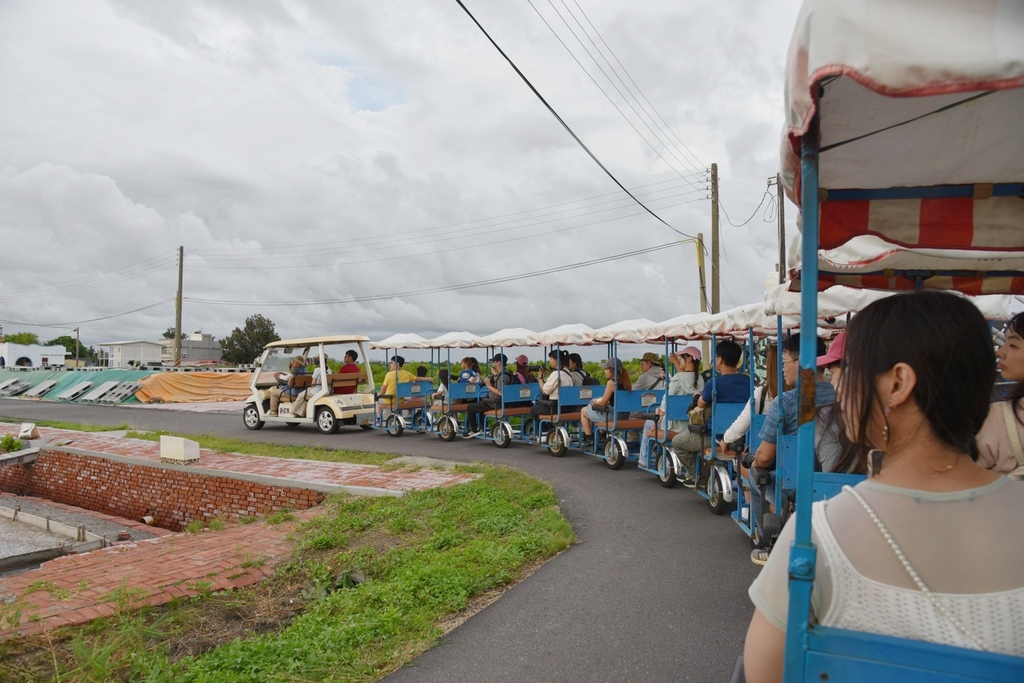 ▼透過搭乘免費觀光列車,並聆聽導覽員精闢的講解,讓我們對井仔腳瓦盤鹽田的歷史有了更全面的認識。