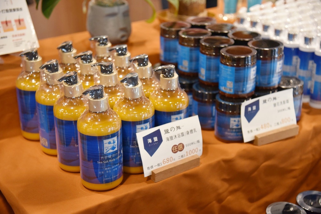 ▼北門觀光洗滌鹽工場不僅展現了北門鹽鄉的獨特魅力,更融入雲嘉南地區的優質農產品,打造出獨樹一格、真正「愛台灣、愛台南」的在地獨家商品,包括特色小農植萃洗沐二合一系列、All in one醫美級保養品系列、療癒身心的芳療香氛系列,以及充滿文創氣息的北門海鹽伴手禮區,讓大家在聞香賞古蹟的同時,也能盡情享受好玩、好買的樂趣。