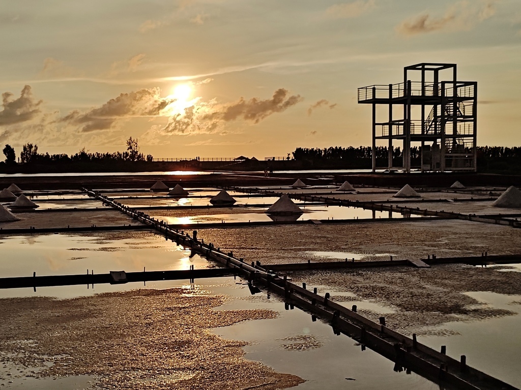 如此不僅方便採收更潔淨的鹽粒,更展現了先人的智慧與巧思。時至今日井仔腳瓦盤鹽田已轉型為兼具歷史意義與觀光價值的熱門景點,尤其那絕美的夕陽餘暉灑落在瓦盤上,交織出如詩如畫的景致,是攝影愛好者來到北門時絕對不能錯過的夢幻畫面。
