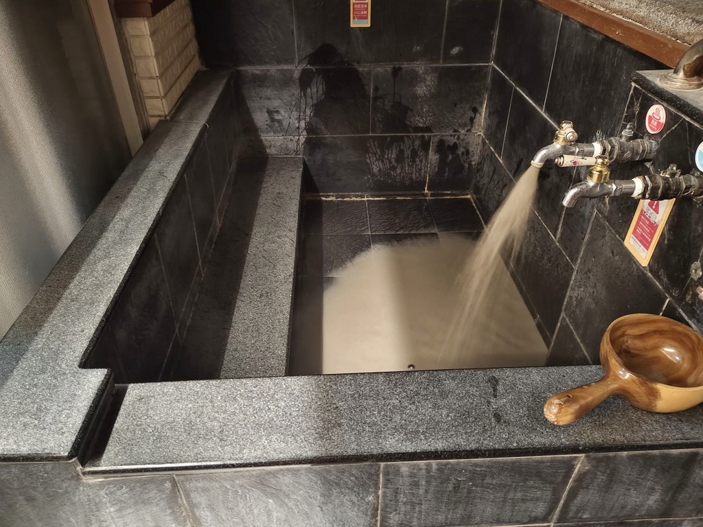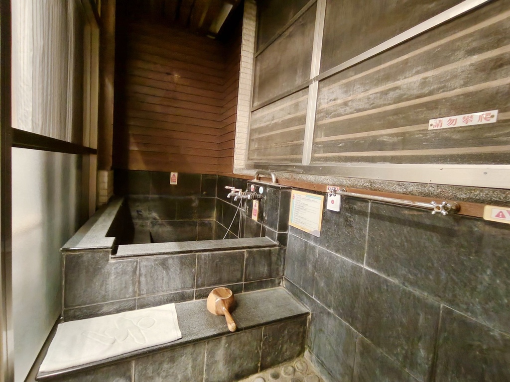 ▼關子嶺富野溫泉會館擁有關子嶺泥漿溫泉房型,我們只要打開陽台,外面就是一座獨立湯屋,這可讓西莉亞驚喜連連,在這裡可以盡情享受世界聞名的關子嶺泥漿溫泉。