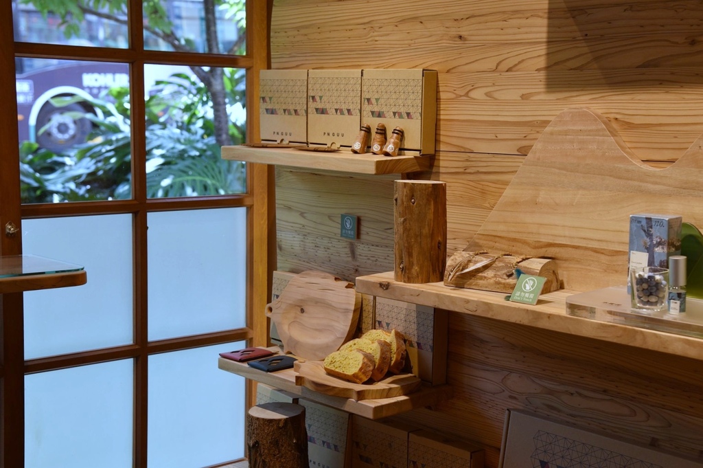 ▼館內最特別的莫過於那根與建築結構融為一體的螺旋狀精神柱,其不規則的旋轉和自然的紋理,令人印象深刻。臺灣木材故事館雖不大,但卻透過「木」、「器」、「具」為主題的六大展區,展現豐富的臺灣木材文化。
