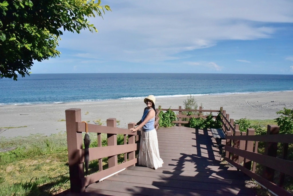 沿著台九線一路向北,我們將腳步停留在近幾年很夯的華源海灣,好喜愛台九線沿途可見的裝置藝術,碧海藍天搭配平整的沙灘,這華源海灣驚艷到真沒令人失望。可也許西莉亞對台東不甚熟悉,我們一群人開心拍完照準備離開之際,旅伴順手指向華源海灣...