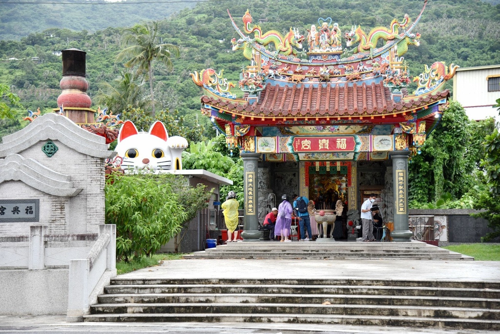 ▼台東縣太麻里鄉。百年土地公廟福興宮招財貓