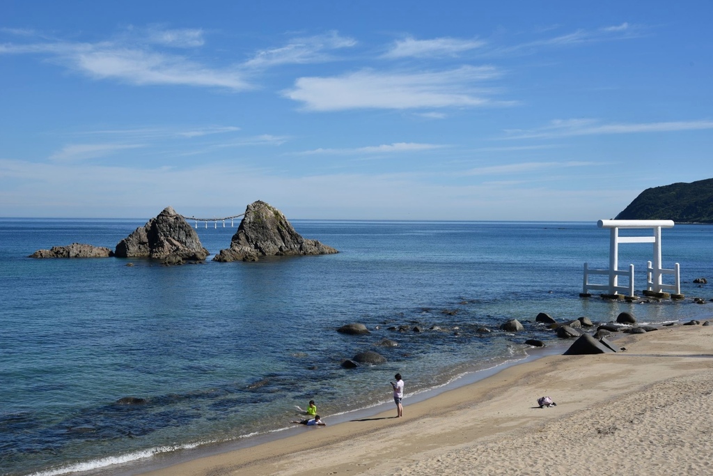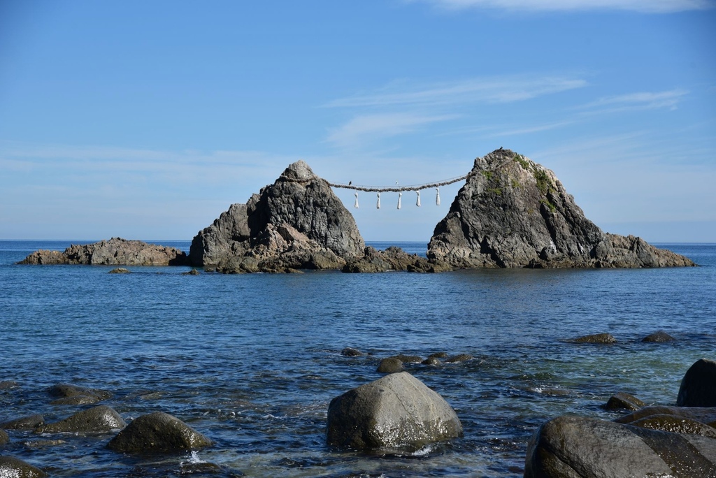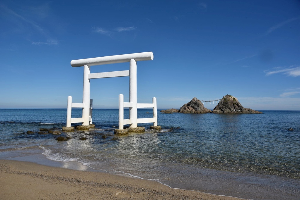 矗立在海邊的白色鳥居、一大一小連結著注連繩的夫婦岩,成為海邊一道莊嚴又神秘的絕景。天氣好的時候在這裡觀賞夕陽,更是難以忘懷的美麗景色! 櫻井二見浦夫婦岩位於被譽為福岡後花園的糸島,不僅日本人喜愛在假日前往糸島,來一個遠離都市的輕鬆小旅行,越來越多喜歡自由行的外國旅客,也漸漸關注到糸島市的特色,就如同我們一樣。