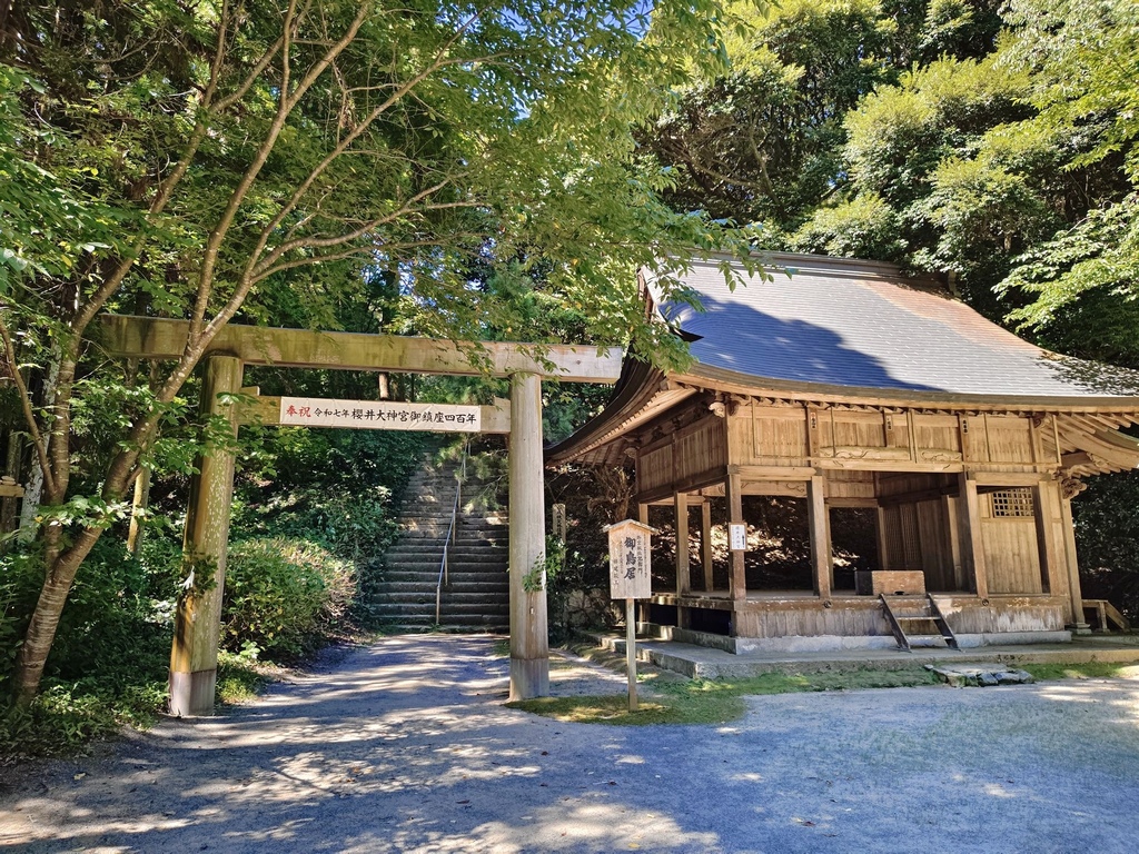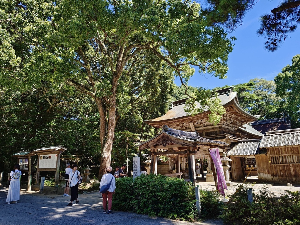 第二天我們計畫了福岡縣糸島市一日遊,首先我們來到櫻井二見浦夫婦岩,這裡的白色鳥居與夫婦岩是糸島的代表性地標。潔白的鳥居在藍天碧海的襯托下顯得格外神聖,兩座比鄰的岩石串著注連繩,彷彿一對深情相望的夫婦,寧靜美麗的畫面令人嚮往。接著我們驅車前往附近的櫻井神社。這一座神社的歷史悠久,莊嚴的氛圍中帶有幾分靜謐。