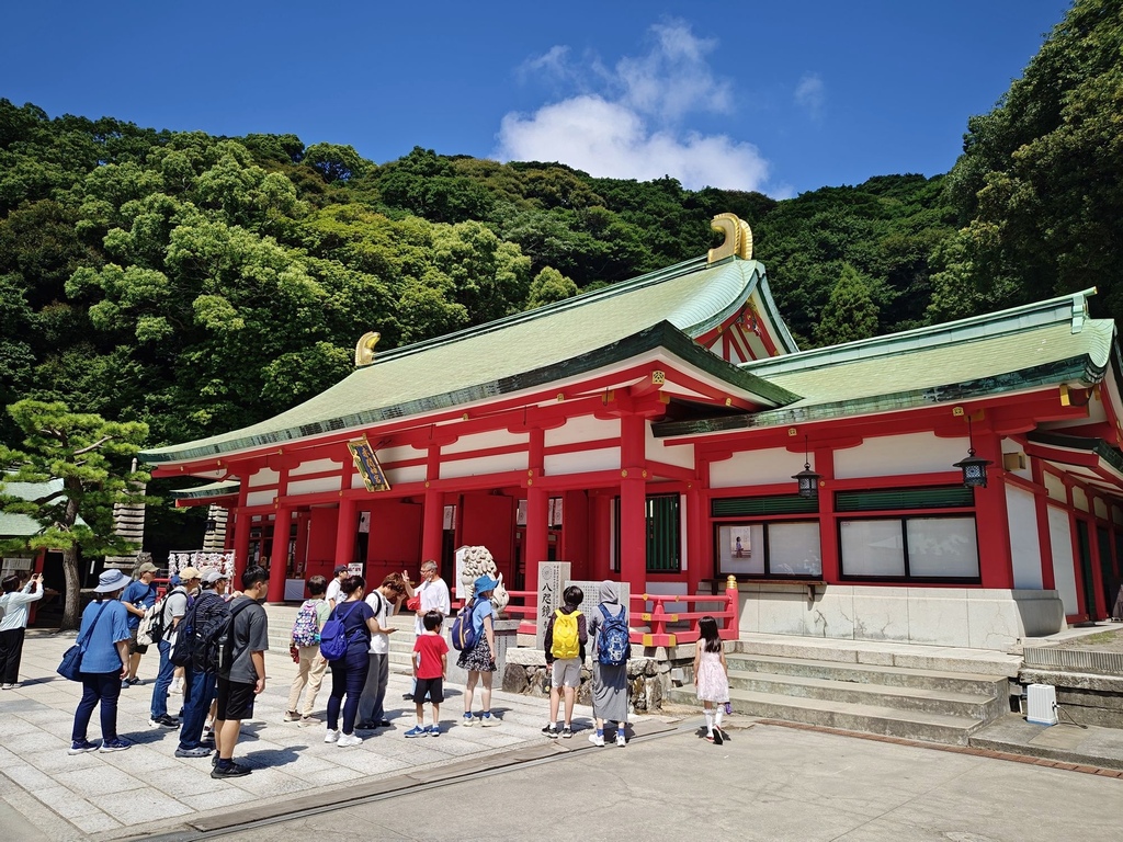 赤間神宮是為了紀念在壇之浦之戰中不幸逝世的安德天皇而建立。這座神社的建築風格與一般神社不同,採用了色彩鮮明的龍宮造型,在陽光下顯得格外莊嚴而優雅。境內還有多個與源平合戰相關的遺跡,例如平家一族之墓。參拜者不僅能在此感受歷史的厚重,也能遠眺關門海峽的壯闊景色,是個兼具歷史、文化與美景的景點。