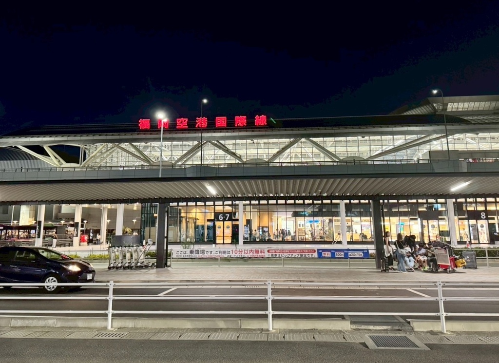 行程第一天我們抵達福岡機場,時間來到晚上八點多,完成所有入境手續之後,西莉亞透過LINE群組與BBC青鳥旅遊的阿邦聯繫,並約定好福岡機場見面的地點。