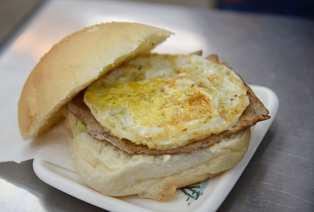 ▼卡閣萊早餐店豬肉蛋堡,這是一款經典的台式風味。咬下瞬間,感受到鬆軟微甜的漢堡麵包,接著是厚實多汁的煎豬肉片,伴隨著鹹香的調味。煎得微焦、邊緣恰恰好的荷包蛋,帶來滑嫩又有些許Q彈的蛋香。