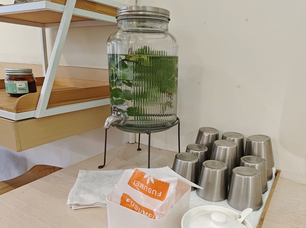▼時蒔vegan蔬食麵館可以免費自行取用的開水。