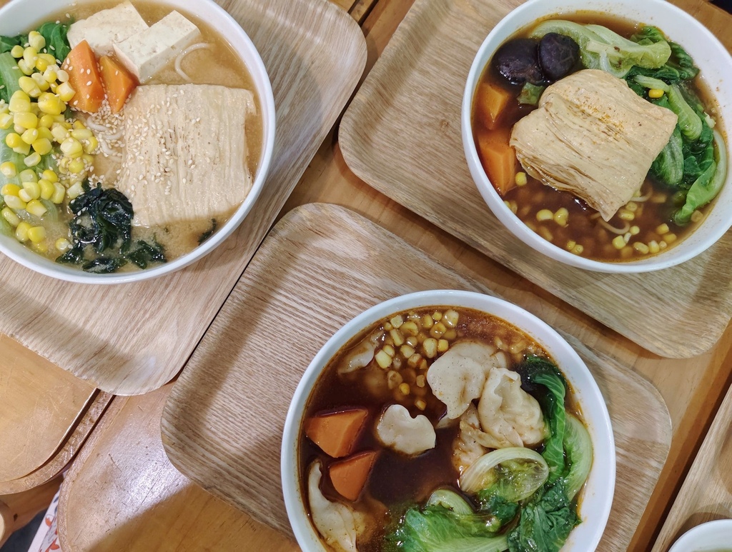 ▼當天我們在時蒔vegan蔬食麵館享用了家傳紅燒湯麵、家傳紅燒湯餃/10粒水餃、豆包豆乳味噌湯麵、小果昔 (奇亞籽覆盆莓芭樂)、2盤小菜 (香椿豆腐、涼拌佛手瓜)。